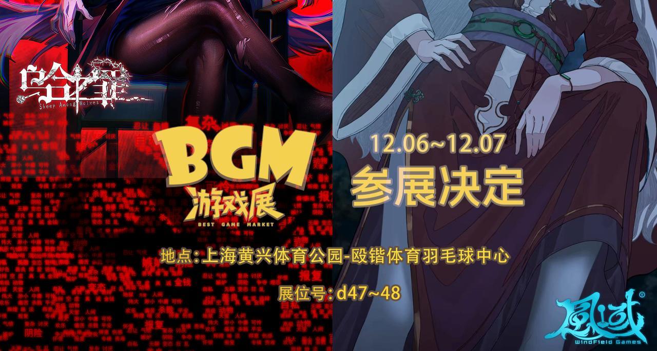 风域游戏携新游亮相2025新物集 BGM 游戏展啦!一起来享受游戏盛宴吧!风域游戏展台位于上海黄兴体育公园-殴锴体育羽毛球中心d47&48号展位~大家可以在此体验《乌合之罪》以及《蜉蝣之国的囚徒》两款款游戏的线下试玩——全是新潮的游戏噢!不仅如此,试玩还可