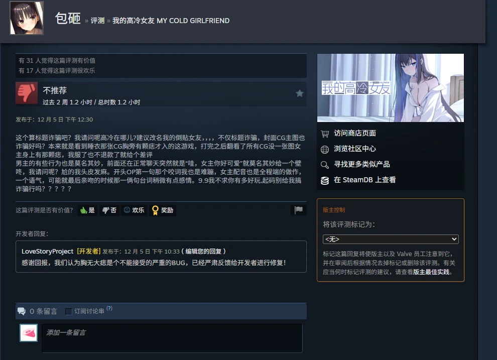 同时也非常感谢这位使用柚子社头像、昵称为 “包砸” 的玩家,在评测中细致地指出了这一问题,帮助我们第一时间定位并确认了疏漏。