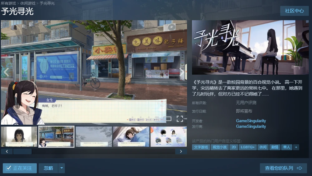 大家好,这里是游戏奇点,正在制作校园百合视觉小说-《予光寻光》。