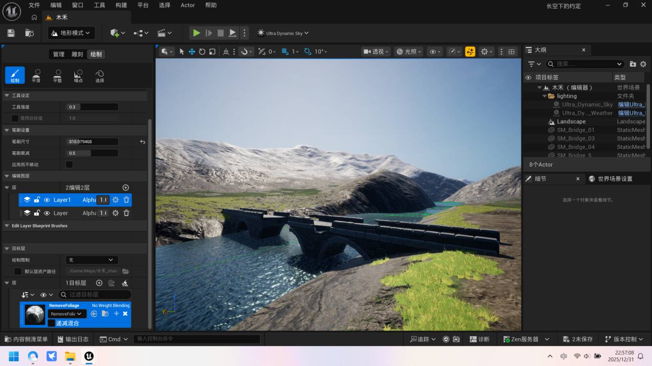 至于背景方面尝试了AI,但效果不甚理想,于是决定用UE5完成背景图的搭建与渲染(目前还在搭建地形)