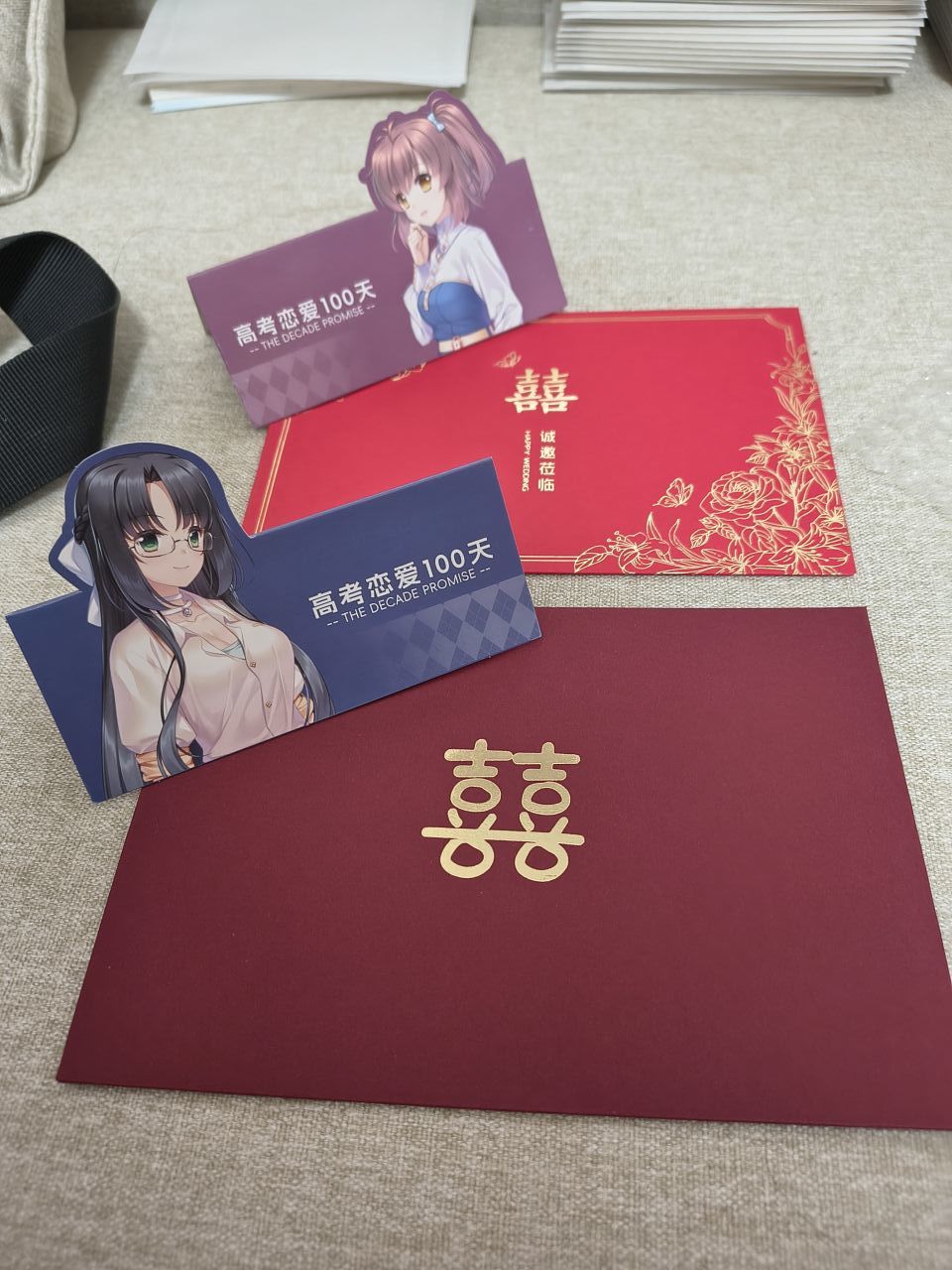 这几天在补做第二批周边,这批周边里多出来的婚礼邀请函,是直播间小伙伴们提的建议。后来我就去家附近的婚庆店预定了,店长还问我为啥邀请函上没有新郎的名字[cube_摘墨镜]其实,最早大家的建议是做个结婚证(可以让玩家自己贴照片的那种),但结婚证哪怕是恶搞的那种也算做假证当时我还