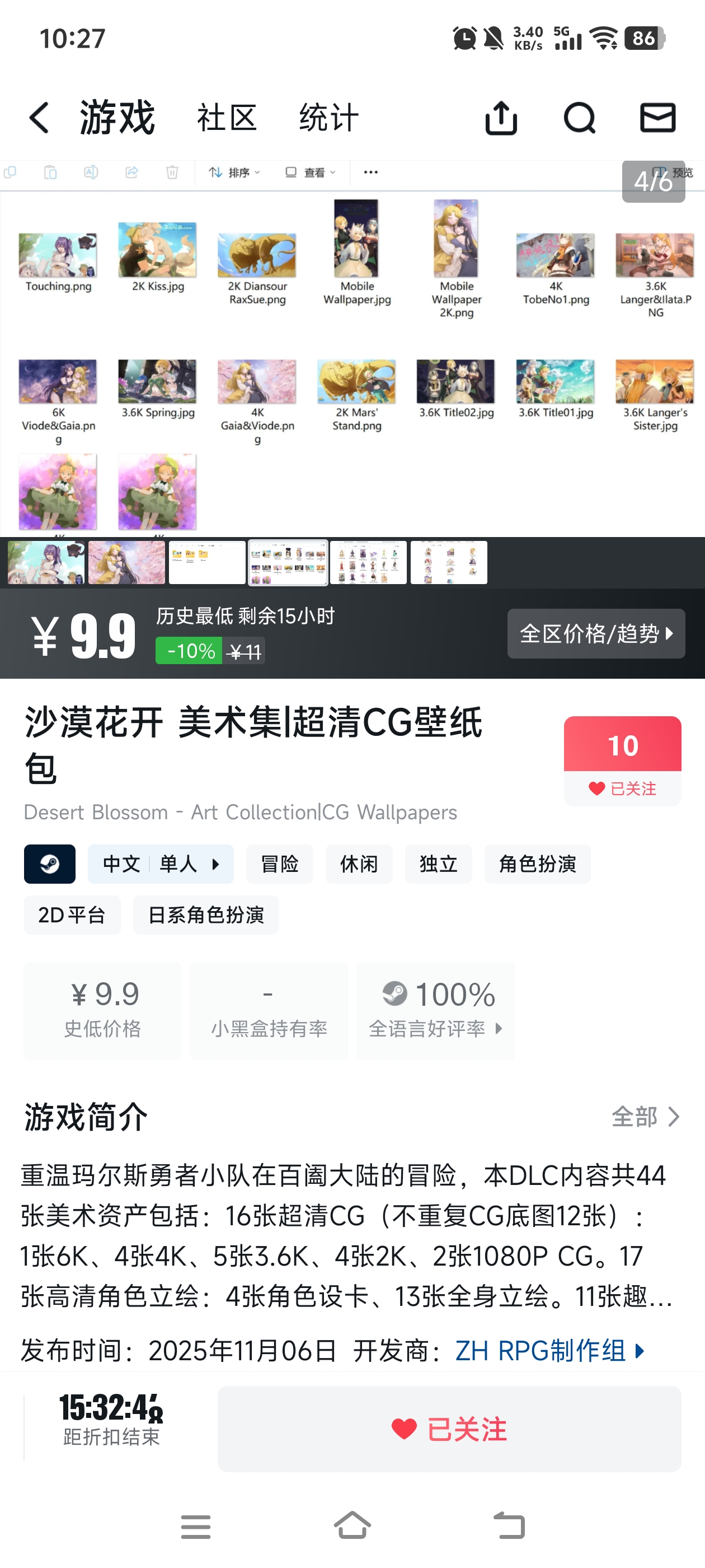 我们是专注于独立游戏创作百合喜剧JRPG的ZH RPG制作组[桃源_给花花]。冬促还有最后一天,第一作《沙漠花开》的dlc免费更新+9张图,可以支持我们一下,所得将纳入系列新作的制作基金。