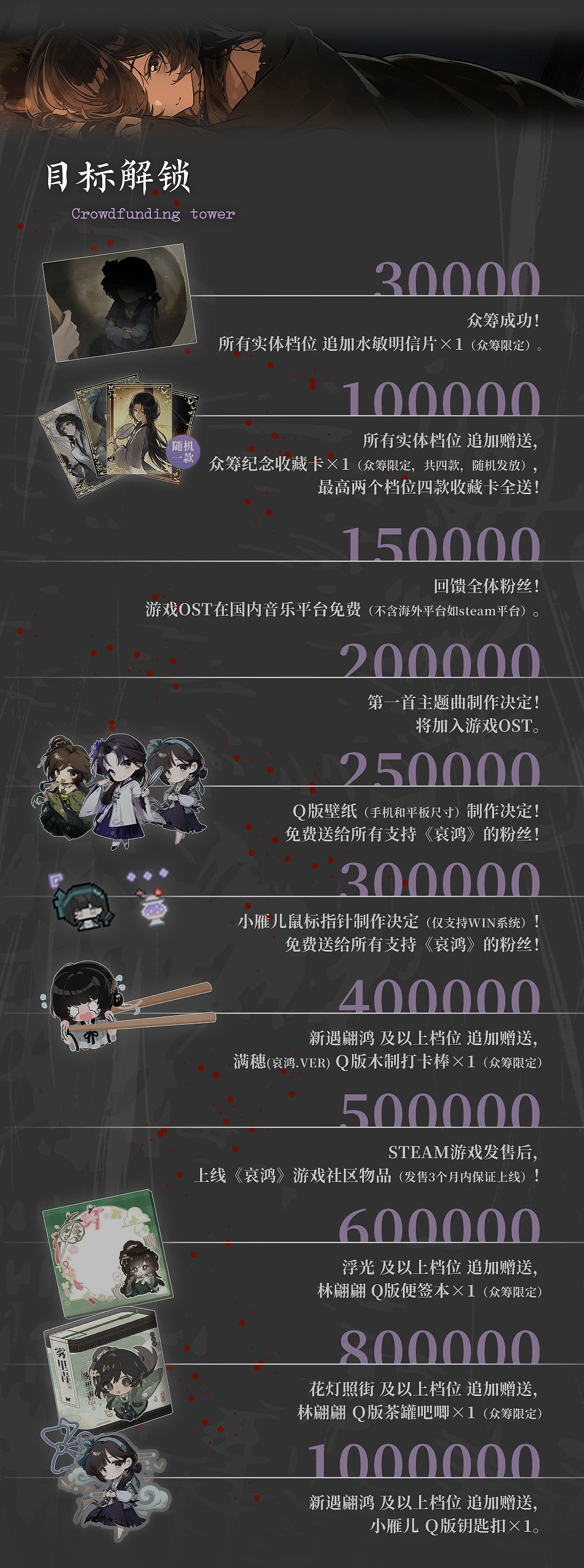 为了让每一位支持我们的玩家都能收获专属纪念,本次众筹,我们筹备了诚意满满的档位福利与解锁内容。