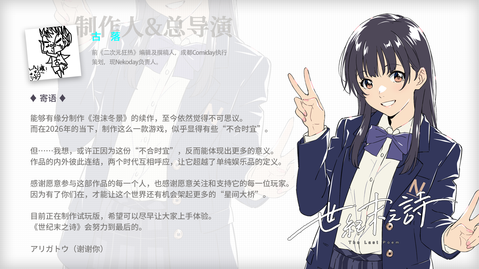 感谢愿意参与这部作品的每一个人,也感谢愿意关注和支持它的每一位玩家。