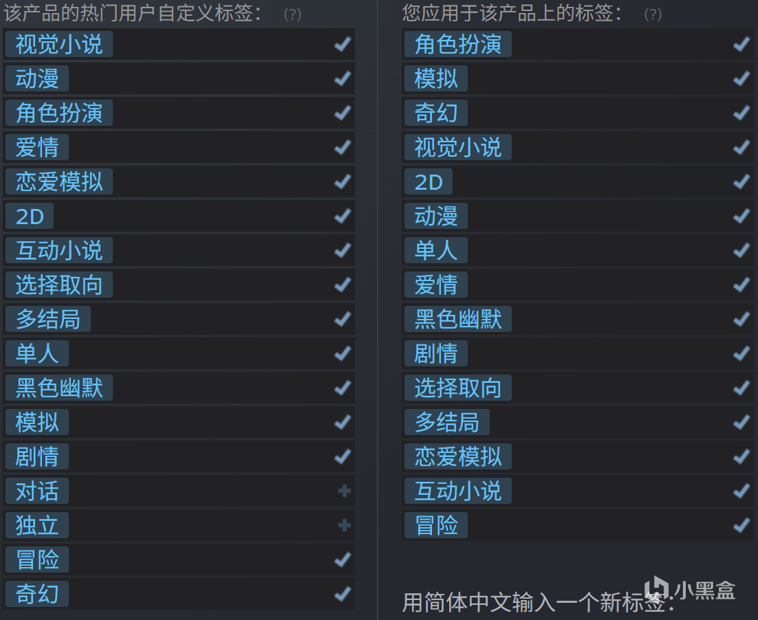 众所周知(?)steam上的游戏“标签”决定了你的游戏会与什么类别的作品“相似”,并使你的游戏会出现在这些相似作品的页面上,这也影响了商店页会得到的自然流量。因此,在DEMO上线一个月后的复盘里,我开始根据反馈建议,调整我的游戏“标签”。这是一款带有轻微探