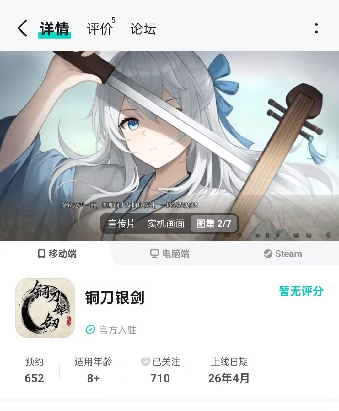 据游糖社报道,国产古风武侠AVG《铜刀银剑》已获得超二十万愿望单,创作团队获得网易之公司投资,将更换游戏引擎,将游戏改编为武侠开放世界游戏。据知情人士称,此次投资可能来源于网易之公司对《王者荣耀世界》的狙击,未来《铜刀银剑》将同步登录三端,目前已在topt