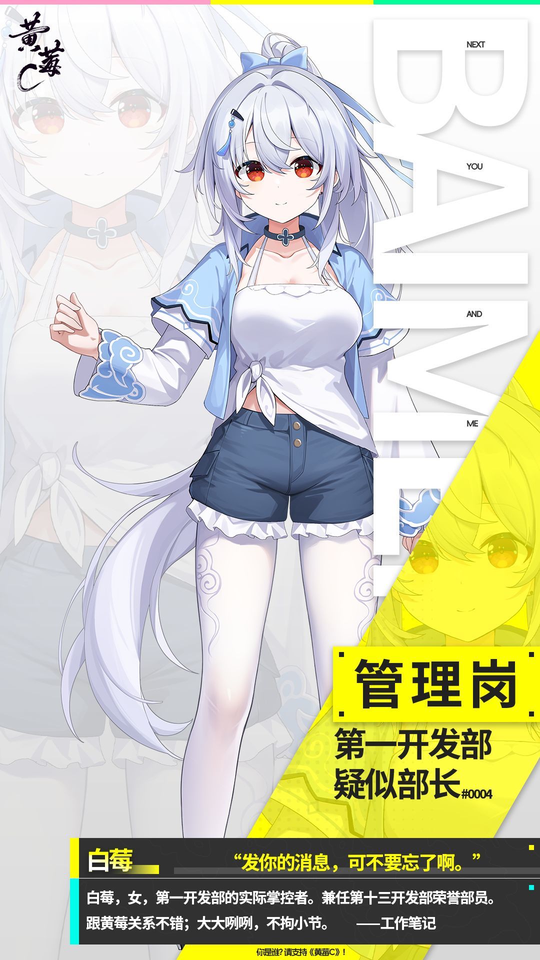 宝宝们早安午安晚安喵~[cube_喜欢][cube_喜欢]可喜可贺喵!新角色终于落地啦!【白毛红瞳的设定是极好的,大家一起来画白毛红瞳!】【不需要那么多啦!】【对的对的!白毛红瞳才是对的!】【有没有人在听我说话啊!】敬请期待废萌恋爱喜剧《黄莓C》喵~[cube_喜欢][cube_喜欢][cube_喜欢]设定图已更新!